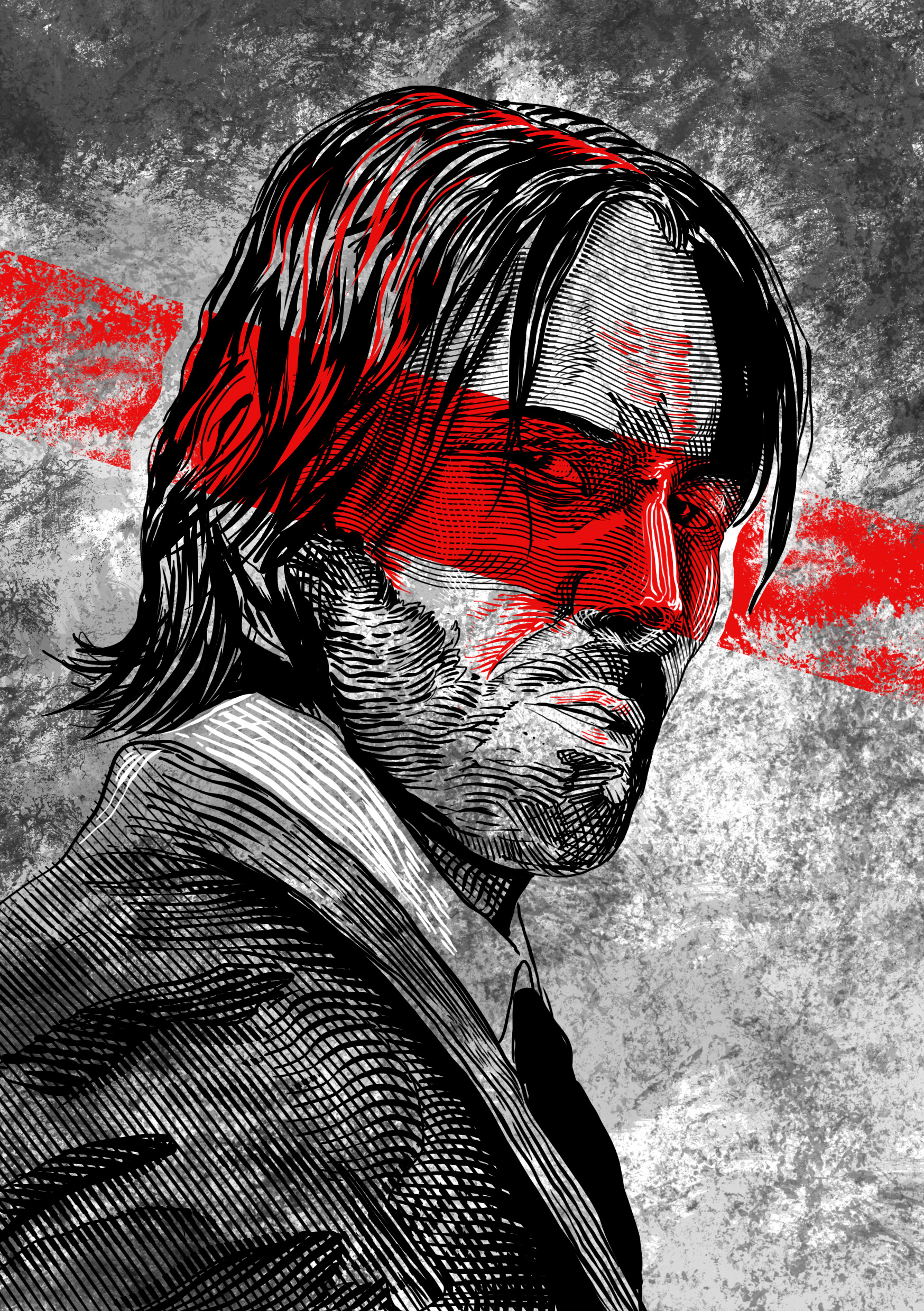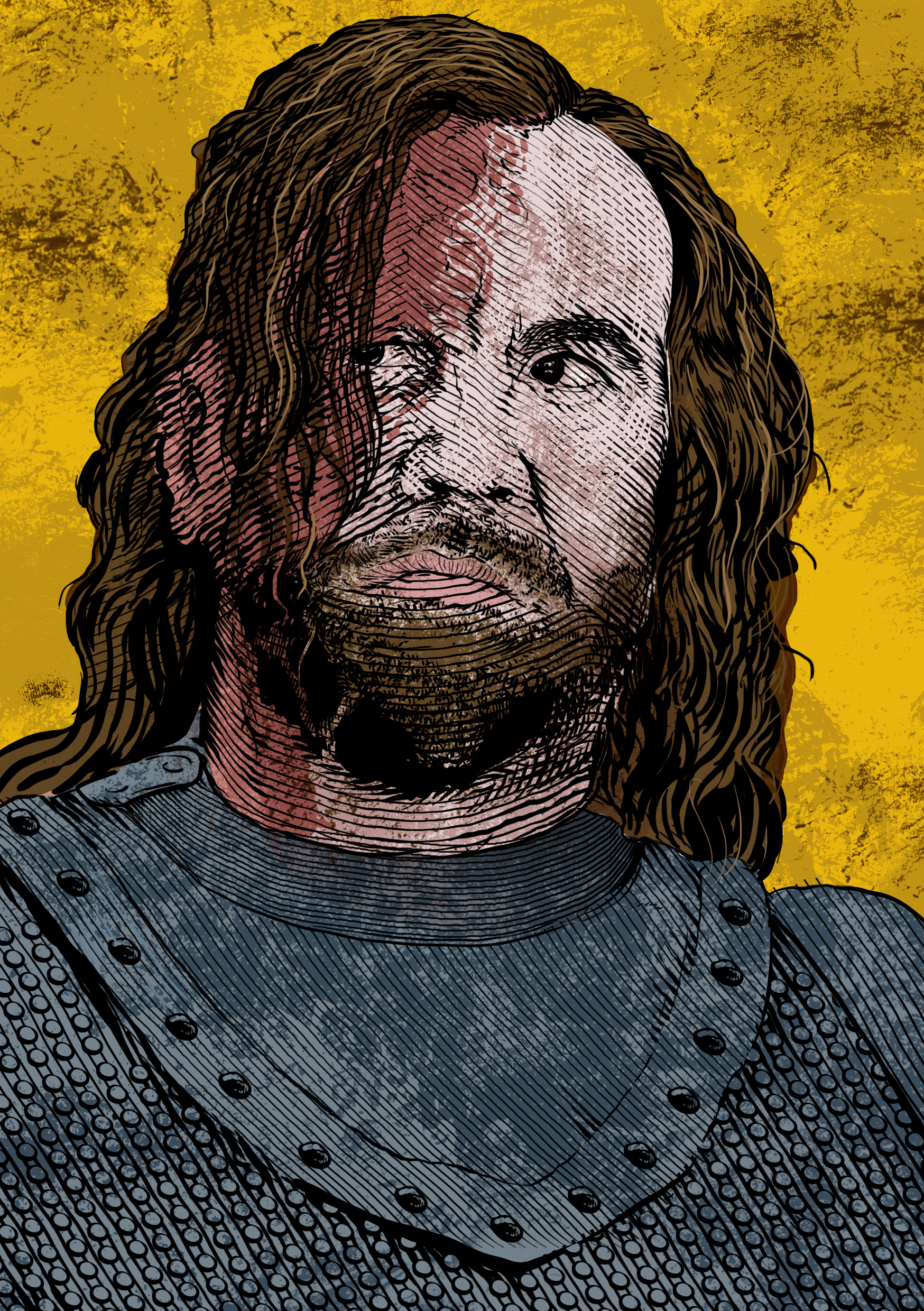 Series of portraits of some famous characters like The Hound, Thomas Wake (The Lighthouse), John Wick, Away Gil Brother, Luiz Boça and Moises exploring digital cross hatching.